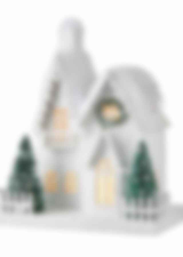10.75 FLOCKED DOUBLE GABLE LIGHTED HOUSE