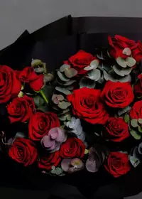 $170.00A premium display of 18 (a dozen and a half) long stem red premium roses wrapped amongst a bedding of luxury greenery like eucalyptus