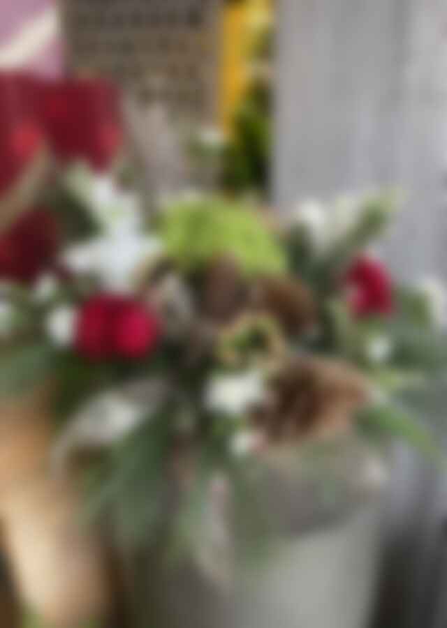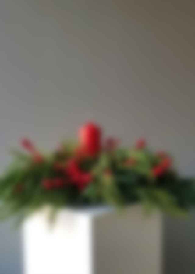 $100.00Gorgeous flowing winter greens, premium red ilex berries and a long lasting unscented red pillar candle - the full look is a classic holiday design ideal for the dining room, coffee table or kitchen island.