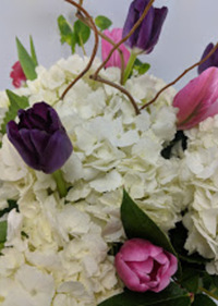 $90.00Luscious Hydrangeas, Fresh Cut Tulips makes this arrangement the perfect Spring gift. Hope Springs Eternal "it is human nature to always find fresh cause for optimism" - Professionally designed in a clear class vase with accents of textured greens and curly willow.