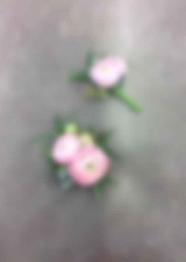 $75.00A matching corsage and boutonnière matching set featuring pink ranaculus and natural foliage